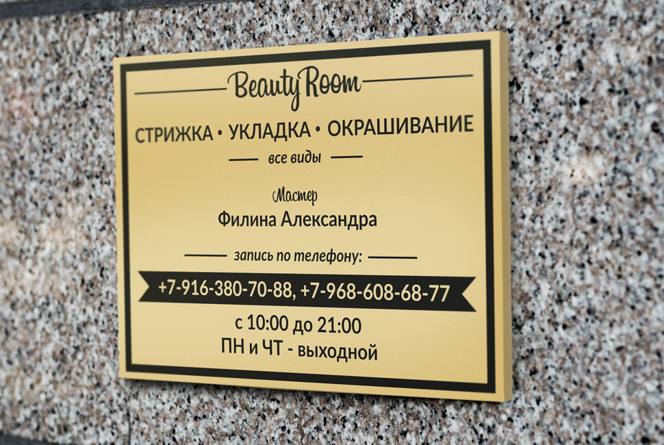 Все портфолио Назад Дальше Дизайн таблички для салона красоты "Beauty Room" Кто мы https://youtu.be/VIuj4labZm4 Похожие работы Баннерные стенды для Автолицея "Автокурс" Подробнее Логотип для "Астрамед+" Подробнее Логотип и фирменный стиль для ресторана здорового питания "Egoist" Подробнее Дизайн визитки для центра аренды спецтехники Подробнее Создание сайта для "Voice Fashion" Подробнее Оклейка плёнкой заднего окна автомобиля для автомойки Подробнее Оклейка газели плёнкой для компании "Enduro" Подробнее Наружная реклама для центра медицинской косметологии и красоты "Milar Clinic" Подробнее